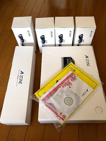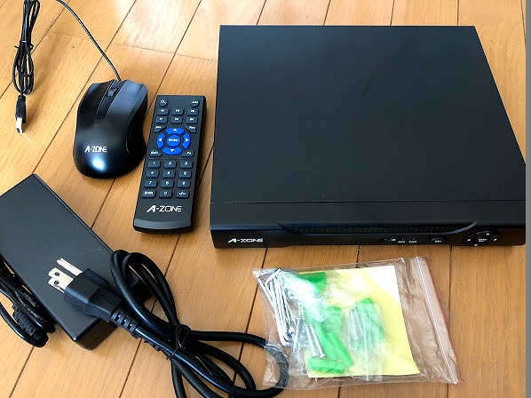 本体・AC電源(日本用のコンセント)・リモコン(電池なし)・USBマウス・カメラ固定用ネジ