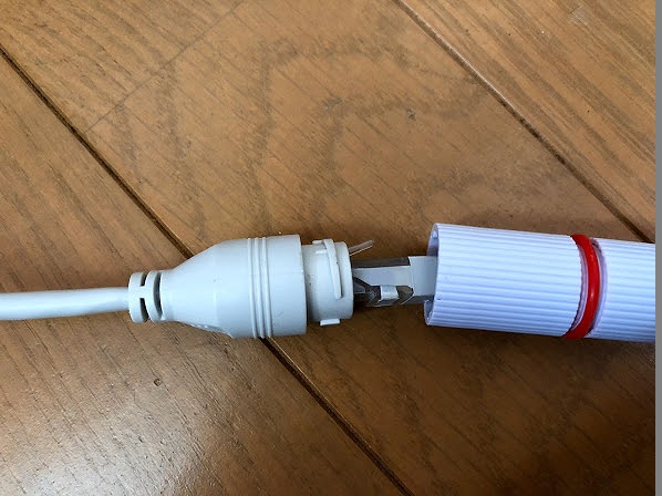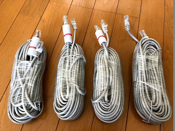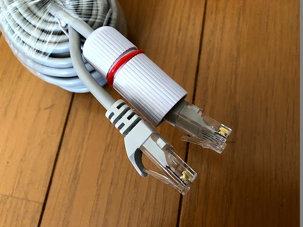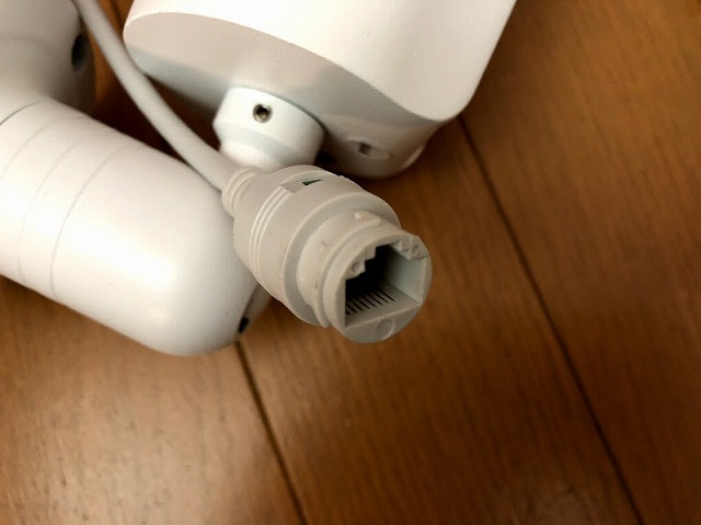 ケーブルとカメラの接続LANケーブル両端はこんな感じ